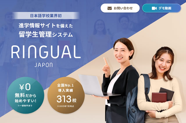 進学情報サイトを備えた、留学生管理システム【RINGUAL】は、日本語学校の運用に特化したUIと機能を凝縮したクラウド型のWebシステムです。